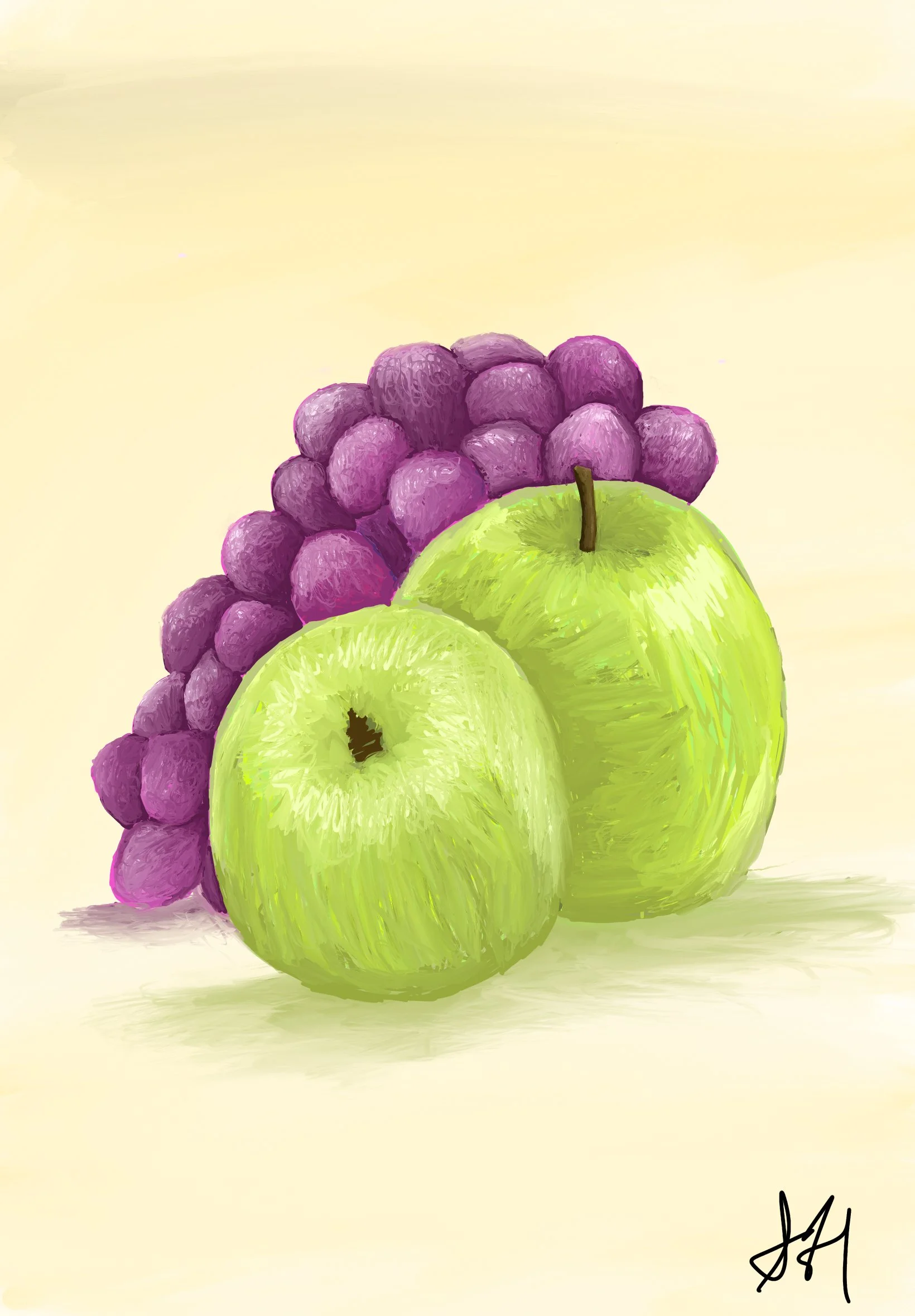 Using procreate, I drew a still life as a study of color, shape, value, and texture of grapes and apples in a digital format.